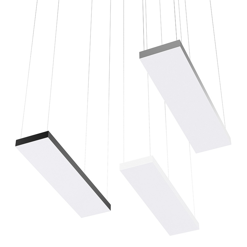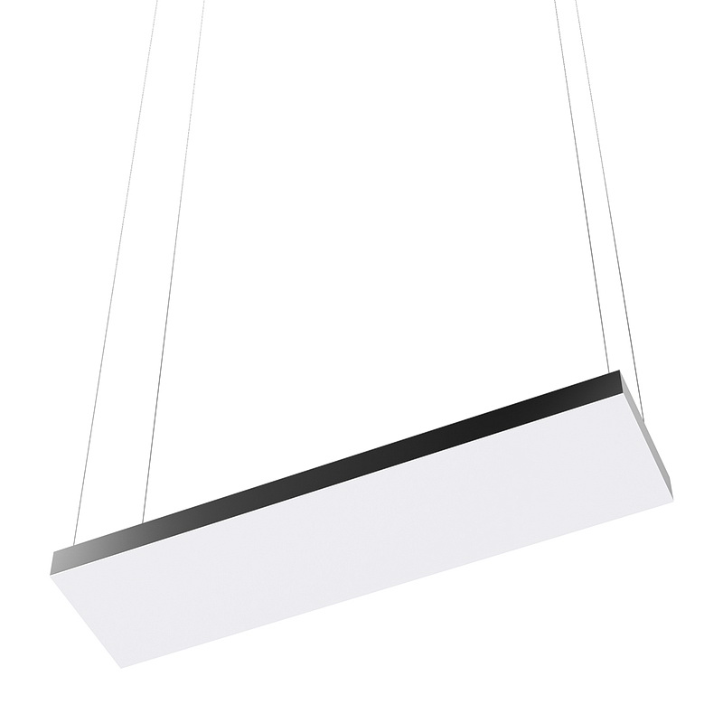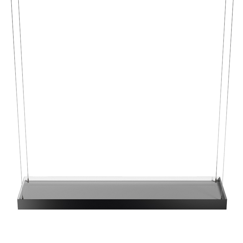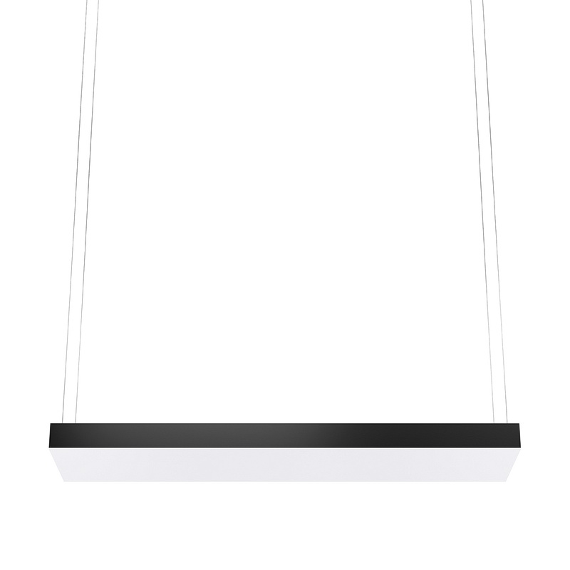 Корпус светильника прямоугольной формы может быть выполнен в черном, белом и сером цветах. Цветовая температура на выбор: теплый цвет (3000К), нейтральный (4000К) или холодный (6500К). Материал корпуса – металл, размеры на выбор. Вариант монтажа – подвесной потолочный.